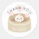 Este obrigado de chá de fraldas bonitinho e neutro em relação ao gênero que você cola apresenta um empecilho com um rosto sorridente em um navio a vapor chinês sobre um fundo branco. Altere a cor de fundo tanto na frente quanto no verso e personalize-a para suas necessidades.