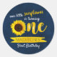 Estes bonitos adesivos de girassol são perfeitos para qualquer um que comemora um primeiro aniversário neste primavera ou verão. O design apresenta um girassol brilhante sobre um fundo azul marinho moderno, com uma redação fácil de personalizar modelo.