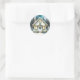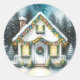 Vinhetas de Natal. Pequena casa festiva branca e bonita na floresta de inverno.