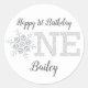 Adesivo Redondo Pequeno primeiro aniversario de Lama de Neve