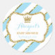 Rotule seu chá de fraldas ou itens de festa de aniversário com este adesivo divertido com o tema do príncipe! O texto pode ser editado para um aniversário, batismo ou outra ocasião especial. Outras cores disponíveis aqui: http://www.zazzle.com/collections/baby_shower_for_a_little_prince-119604608769793210 A brilho e a folha de alumínio são imagens incorporadas e a design será impressão plana e sem a textura de brilho ou folha de alumínio real.