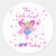 Pequenos camisetas de primeiro aniversario Angel, trajes corporais, e mais com texto colorido cor-de-rosa que diz "Este pequeno anjo é um hoje!", uma princesa de fada de anjo bonito, e muitas estrelas!
