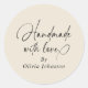 Pequenos Negócios Roteiro Feito à Mão Com Amor | Adesivo Redondo Clássico Ecru