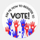 Adesivo Redondo Pergunte-me como se registrar para votar azul verm