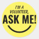Adesivo Redondo Pergunte-me o Crachá do voluntário amarelo