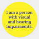 this sticker is a sticker for those with hearing and vision problems. It is simply designed with blue writing on a yellow background. It is a suitable gift for people with hearing and visual impairments.