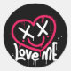 Adesivo Redondo personagem cardíaco com olhos mortos e sorriso pul