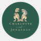 Tragam um rugido de diversão para a vossa celebração com estes autocolantes de casamento de dinossauros! Apresentando uma noiva e noiva T-Rex adoráveis em um elegante e rico fundo verde-escuro. Vinhetas perfeitas para uma recepção de casamento jurássica, janto de ensaio ou celebração dinotemética. Com a tipografia moderna e modelos personalizáveis, você pode facilmente personalizar com os nomes do casal feliz. O charmoso design T-Rex ilustrado em tons castanhos ricos e combina romance lúdico com elegância natural, fazer um adesivo de destaque que seus hóspedes vão amar. Arte original da artista Catherine Sweetman, exclusivamente no Zazzle, acrescenta um toque único ao seu casamento Jurássico.
