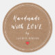 Personalizado à mão com amor em um roteiro moderno em um fundo de papel Kraft. Adiciona um bonito toque final para todos os presentes feitos à mão.