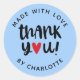 Um adesivo personalizado "feito com amor, Obrigado" com um fundo azul claro. Faça-o seu adicionando seu próprio nome. Um toque bonito de conclusão para obrigado dos seus clientes por compras na sua pequena empresa. Vem em uma variedade de cores. Projetado para você pelo Blackberry Boulevard.