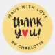 Um adesivo personalizado "feito com amor, Obrigado" com um fundo amarelo. Faça-o seu adicionando seu próprio nome. Um toque bonito de conclusão para obrigado dos seus clientes por compras na sua pequena empresa. Vem em uma variedade de cores. Projetado para você pelo Blackberry Boulevard.