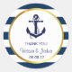 Etiquetas de casamento náuticas personalizadas/personalizadas, selos e etiquetas para os seus favores ou convites. Âncora e estrias marinhos, azuis e brancas, com círculo de folha de ouro. Obtenha cartões de convite correspondentes!