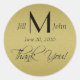 O Elegante Casamento Negro e Branco... Obrigado, Sticker em uma bela fonte de script. Perfeito para marcar os favores do casamento. Design por Elke Clarke ©. Disponível em www.zazzle.com/epclarke. Personalize com seus nomes de noiva e noivo, sobrenome inicial e data de casamento.