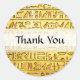 Um conjunto de adesivos amarelos redondos "Obrigado" com hieróglifos antigos gravados na pedra. As palavras "Obrigado" são personalizáveis!