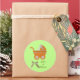 Carruagem de bebê laranja cortada à mão com arco branco e fita branca, botões brancos colados nas rodas e belo arco branco e verde-claro e belo fundo luminoso para chá de fraldas para o bebê no Classic Round Sticker, Glossy. *Todas as coisas que você vê nos produtos são feitas à mão, mas você deve saber que você consegue uma foto!