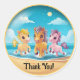 Personalize o nome Cute Ponies on Beach Classic Round Sticker O pônei de desenho "Obrigado" pode ser personalizado com o seu próprio texto. Perfeito para crianças de qualquer idade que amam pôneis e cavalos!