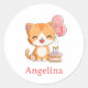Personalize with name! Little kitten design: Great stickers for a girl's 3rd birthday party. Cute kitty with balloons and cake. Scrapbooking supplies, 3rd birthday gift wrap, third birthday invitation stickers, birthday thank you stickers, birthday party decoration stickers. Round little cate stickers for girls, personalized with name, available in 2 sizes. Designed by Best Baby Gifts - given with love.