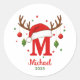 Adesivo Redondo Personalized Christmas Monogram M Santa Hat