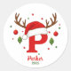 Adesivo Redondo Personalized Christmas Monogram P Santa Hat