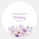 Personalized purple floral birthday classic round sticker. Easy to change the text. Pretty floral for spring, summer and autumn birthday.