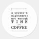 Aproveite o tempo e saiba o que faz um escritor insano. "O pesadelo de um escritor, o tempo insuficiente ou o café" é a vida que muitos escritores vivem. Coloque esses adesivos em cartões de agradecimento, em livros ou use para rir de seu Autor favorito.