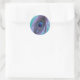 Uma pena de pavão com tons roxos trazidos para o fundo de uma terra firme.