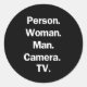 Adesivo Redondo Pessoa. Mulher. Cara. Câmera. TV.