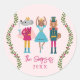Um adesivo bonitinho e festivo de natal que apresenta ilustração desenhada manualmente de gato, cão e rato como personagens balés de nutcracker. O fundo é rosa.