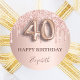 Elegante, clássico, glamouroso e feminino para uma festa de aniversário de 40 anos. Rosa ouro e cor-de-rosa-claro, fundo gradiente. Decorado com rosa dourado, pingos cor-de-rosa, aparência de pingar tinta. Personalize e adicione um nome. Com o texto: Parabéns. O texto é escrito com um moderno e escuro estilo escrito à mão, com rosa. O número 40 é escrito com uma fonte de estilo de balão.
