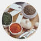 Adesivo Redondo Picado de especiarias frescas com cascas de alho
