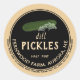 Dill Pickles e Dill Weed a preto com borda kraft; data e ingredientes