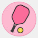 Selos únicos de envelope de picleball, adesivos para presentes ou etiquetas de favoritos de festa com um remo rosa quente e uma esfera amarela.