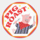 Um porco cor-de-rosa vestindo uma camisa listrada azul e segurando uma faca, garfo e legenda Pig Roast em rostos de churrasco engraçado, t-shirts, botões, canecas e presentes mais divertidos.