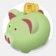 Um belo banco de porquinhos verdes, este design é muito legal e divertido de se olhar. O mealheiro também tem algumas moedas a ser depositadas e o porco parece bonito feliz com isso. Este design de porquinho parece excelente nestes adesivos. Perfeito para si mesmo ou como presente