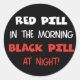 Pílula Vermelha pela Manhã - Pílula Preta na Noite _x005F_x000D_ presente de Excelente para a geração mais antiga ou qualquer pessoa que não consiga dominar caixas de pílula de classificação! O texto e as cores são comutados exatamente como o meu grampo faz com os seus medicamentos! Botões humorísticos, ímãs, camisas e presentes para médicos, enfermeiros, estudantes de medicina, etc. Gráfico em camisas, camisetas, sacos de tote e muitos presentes!