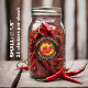 Pimenta vermelha com círculo de chama. Plano de fundo uniforme vermelho. Quatro campos de texto a serem personalizados.
