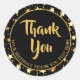 Adesivo de agradecimento temático com estrelas pretas e douradas modernas personalizado com seu texto personalizado e um agradecimento manuscrito em pincel. Use como selos de envelope ou adesivos de lembrancinhas. ALTERAÇÕES: Você pode alterar a cor do fundo ou o estilo da fonte do texto, tamanho, cor ou posicionamento clicando em PERSONALIZAR MAIS. Entre em contato com o designer via Zazzle Chat ou makeitaboutyoustore@gmail.com se você quiser que este design seja modificado, em outro produto ou deseje itens coordenados.