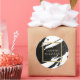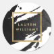 Pinceladas de tinta preta criam um fundo abstrato neste design de adesivo personalizado. Seu nome ou nome da empresa é exibido em uma caixa de ouro falso para uma estética moderna. Esses adesivos são ótimos para usar no fechamento de envelopes ou pacotes, personalizar o texto para dizer 'obrigado' para lembrancinhas de festa, usar para rótulos de produtos ou velas, ou para personalizar os materiais do seu escritório ou material escolar. Arte e design © 1201AM Design Studio | www.1201am.com