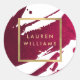 Pinceladas de tinta vermelha-rubi profundas criam um cenário abstrato neste design de adesivo personalizado. Seu nome ou o nome da sua empresa é exibido em uma caixa dourada falsa para uma estética moderna. Esses adesivos são ótimos para usar no fechamento de envelopes ou pacotes, personalizar o texto para dizer 'obrigado' para lembrancinhas de festa, usar para rótulos de produtos ou velas, ou para personalizar os materiais do seu escritório ou material escolar. Arte e design © 1201AM Design Studio | www.1201am.com