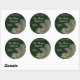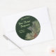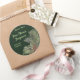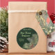 Design redondo com tosse de pinheiro e pinecone posicionados na parte inferior direita com uma cor de fundo verde escuro. As áreas de texto têm quatro grupos personalizáveis. Este exemplo mostra uma etiqueta de Potpourri, funciona bem para velas e sabões perfumados de pino.