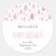 Criado para combinar com nossa coleção chá de bebê pingentes cor-de-rosa bebê. Elegantes pingentes cor-de-rosa bebê caem em direção aos seus detalhes personalizados neste adesivo de chá de bebê fofo. Ideal para selar envelopes de convites ou lembrancinhas da festa.
