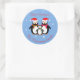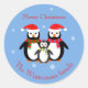Adesivo Redondo Pingins de natal bonitos com texto editável azul