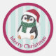 Adesivo Redondo Pinguim Bebê Fofo Usando Chapéu de Papai Noel Nata
