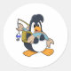 Adesivo Redondo Pinguim como Anglas com Peixe