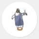 Adesivo Redondo Pinguim como cabeleireiro com tesoura