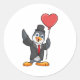 Adesivo Redondo Pinguim como Groom com Heart Ballon