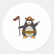 Adesivo Redondo Pinguim como pirata com cinta e chapéu pirata