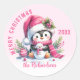 Adesivo Redondo Pinguim-de-Natal Rosa Muito Feliz, Personalizado