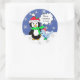 Adesivo Redondo Pinguim Natal e Pássaro Azul Neve