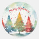 Pinheiros Coloridos é uma aquarela vintage que mostra um grupo de árvores de Natal de cor branca. No espírito do feriado, podemos ter árvores amarelas, verdes ou azuis de cor clara, bem como verdes! Eles também ajustado um Natal moderno. A bela coleção de árvores está feliz nas encostas pacíficas das matas de neve. O título do roteiro "Feliz Natal" pode ser editado neste belo adesivo redondo.